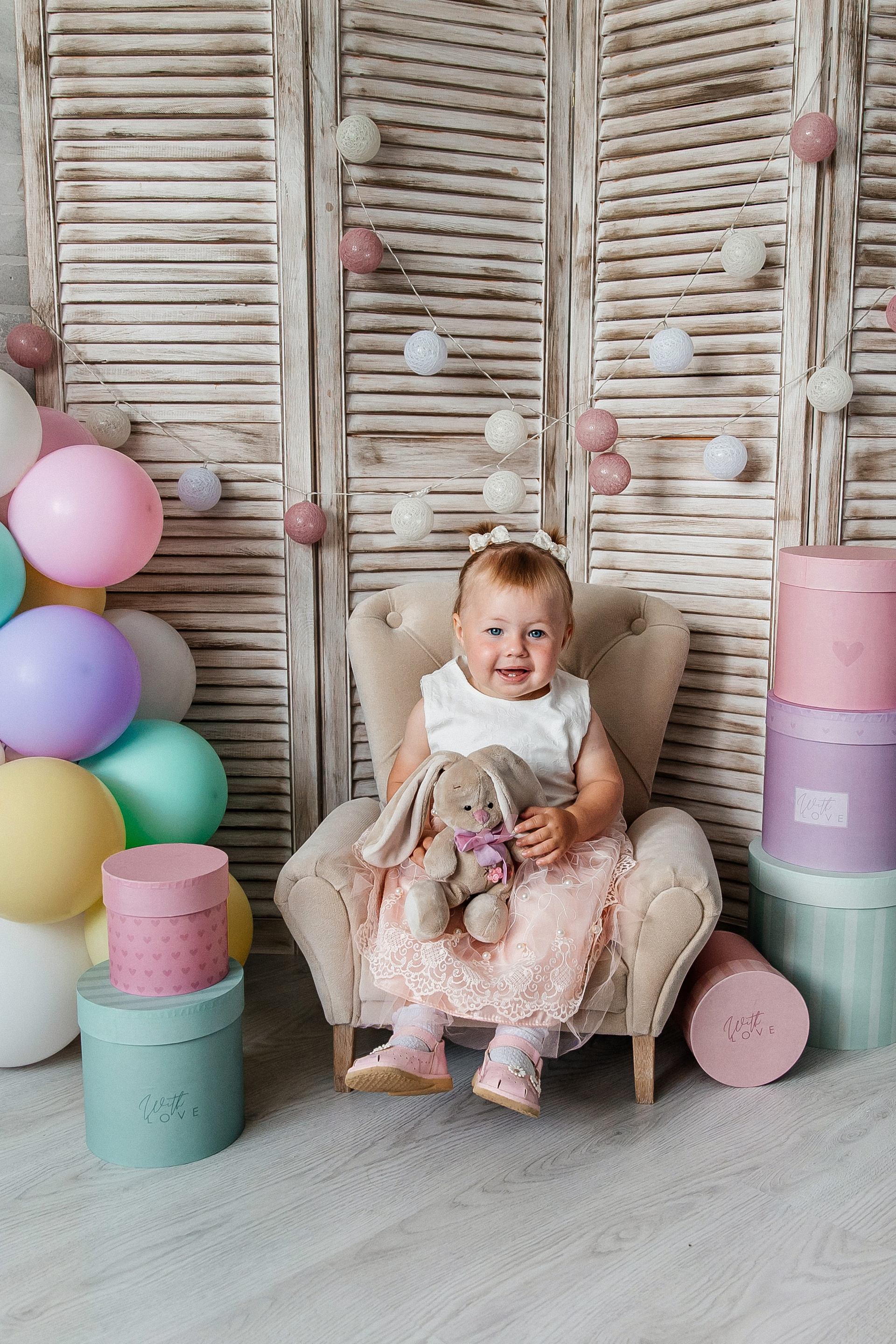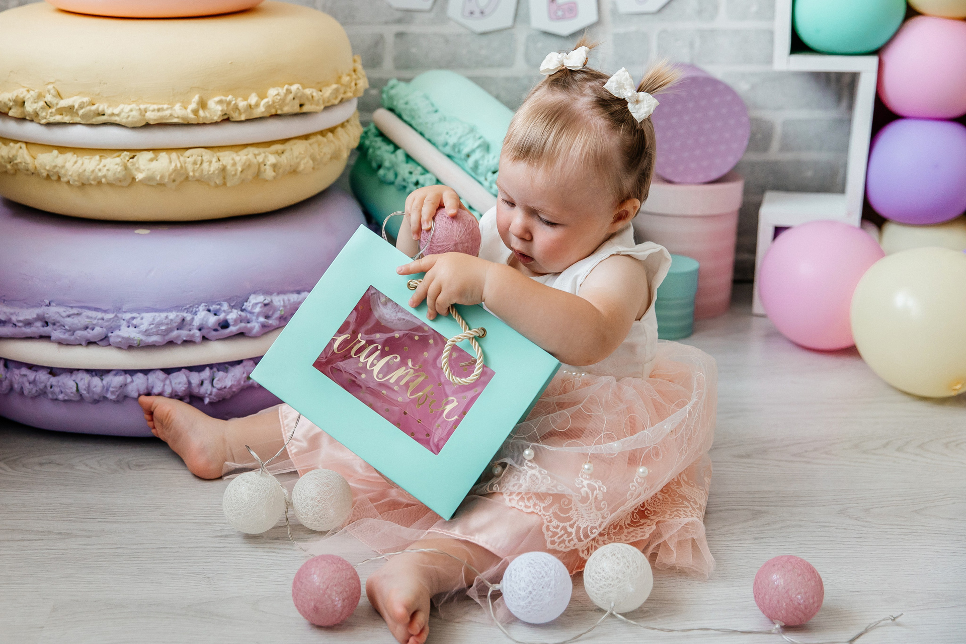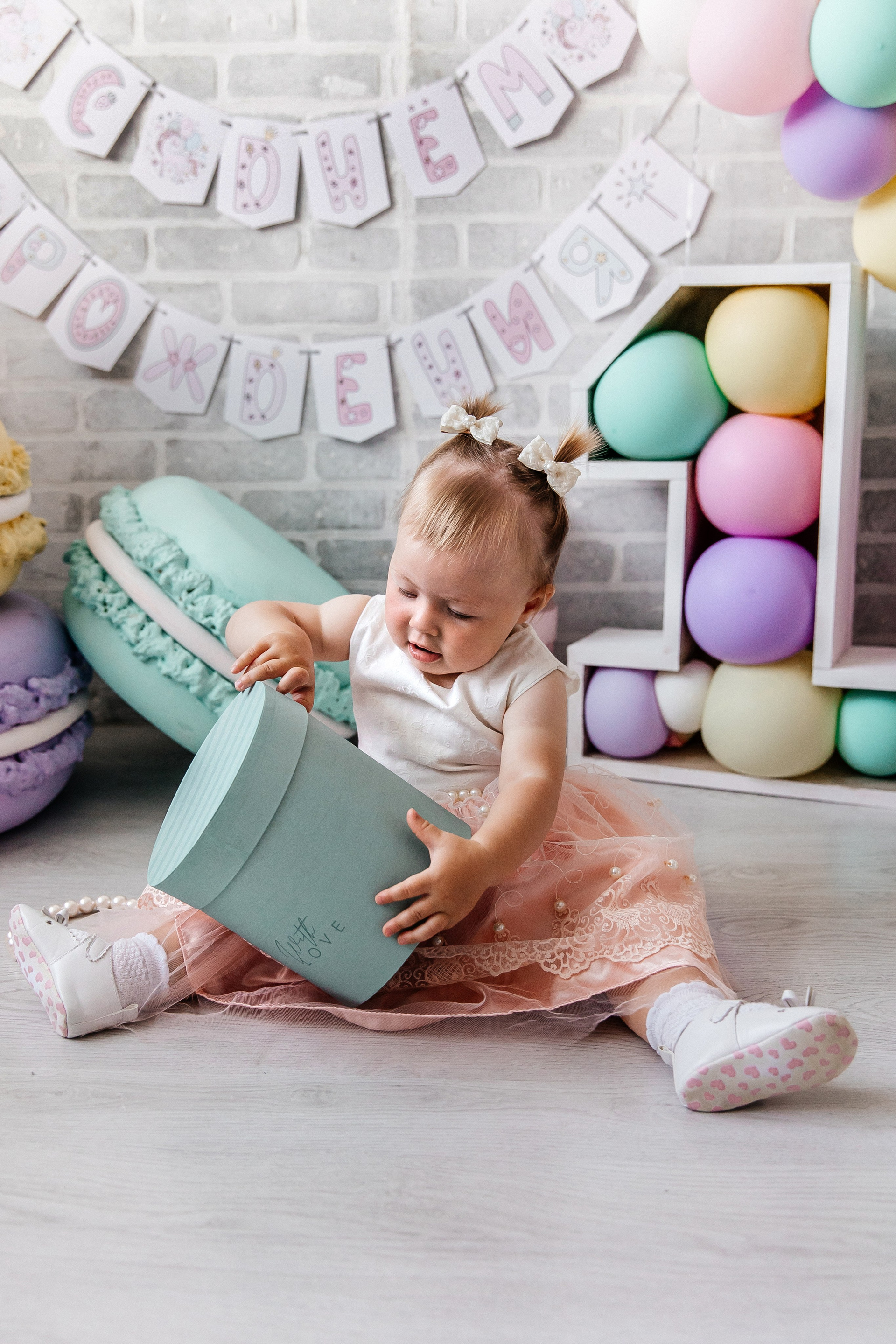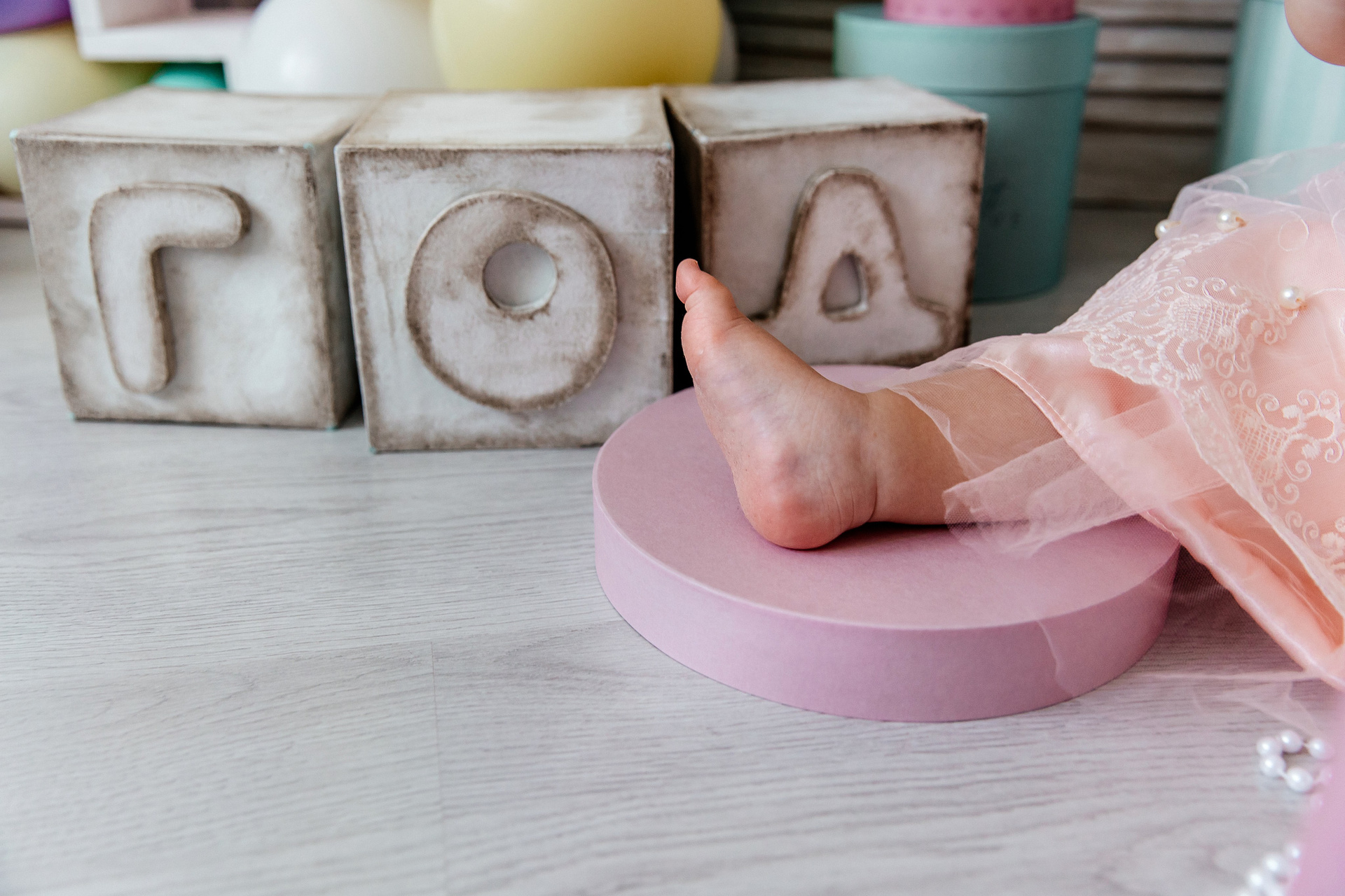 Минимализм (единичка, буквы-кубики, отдельный реквизит на фоне)