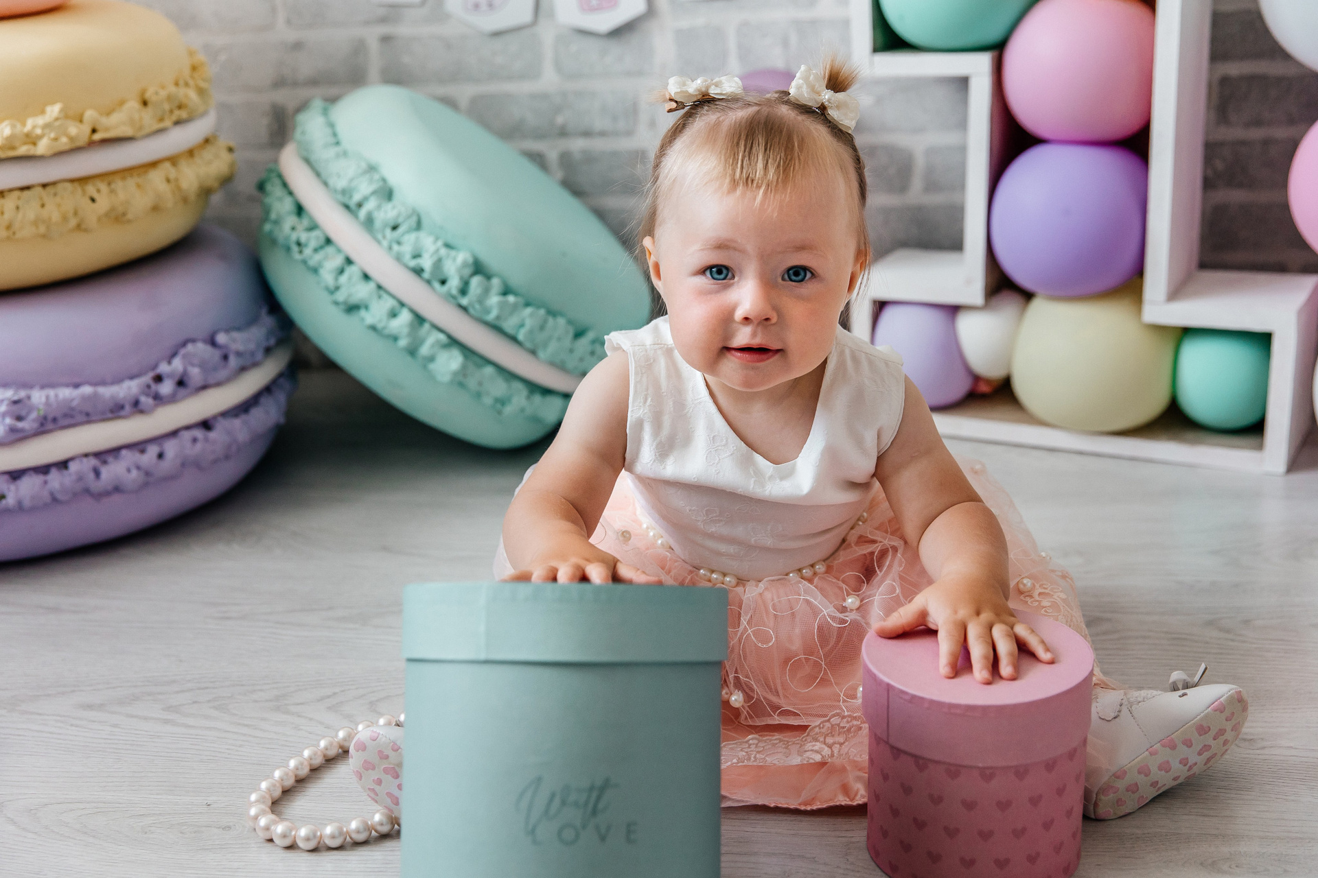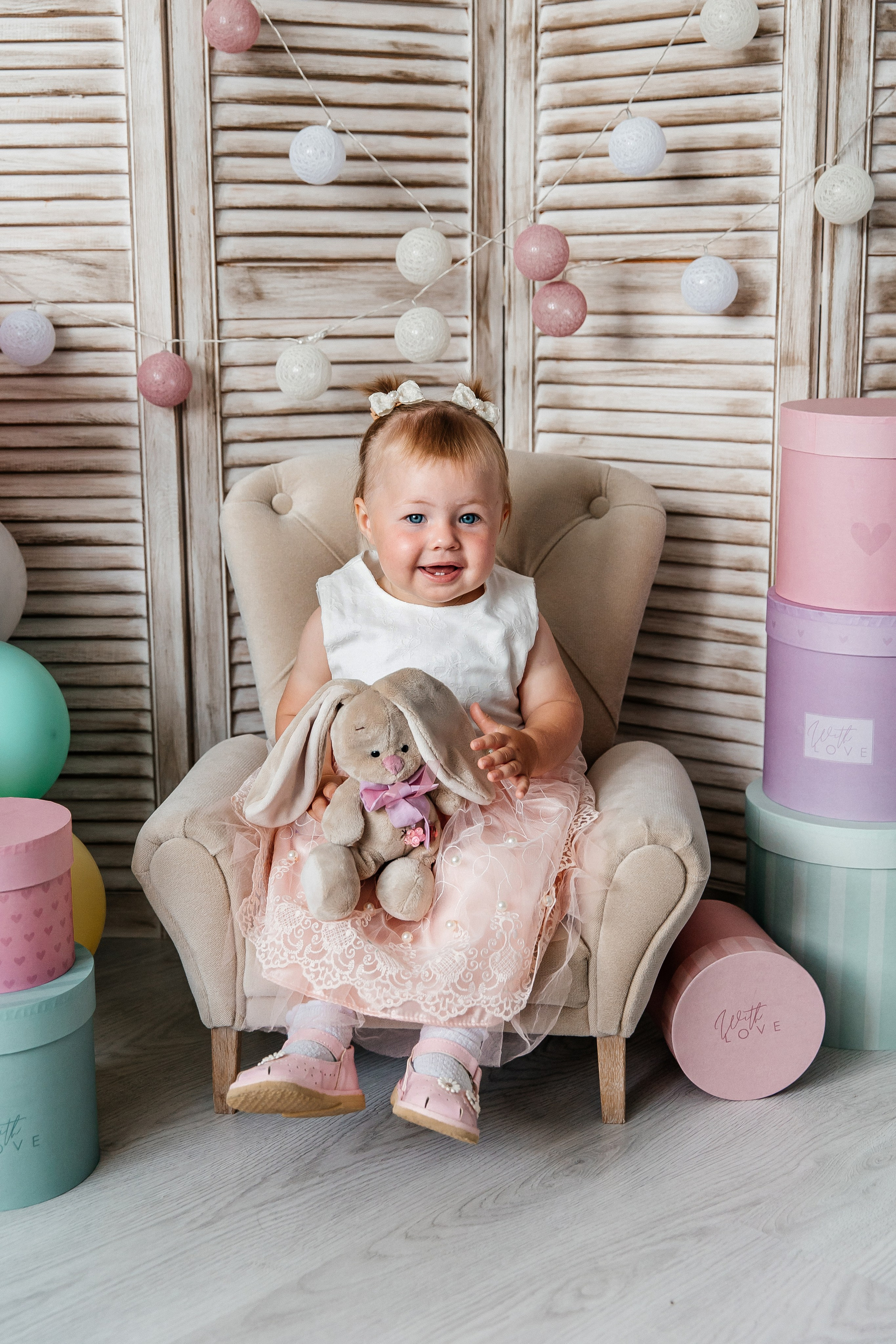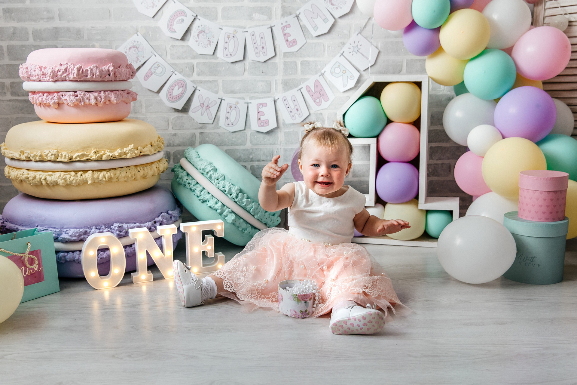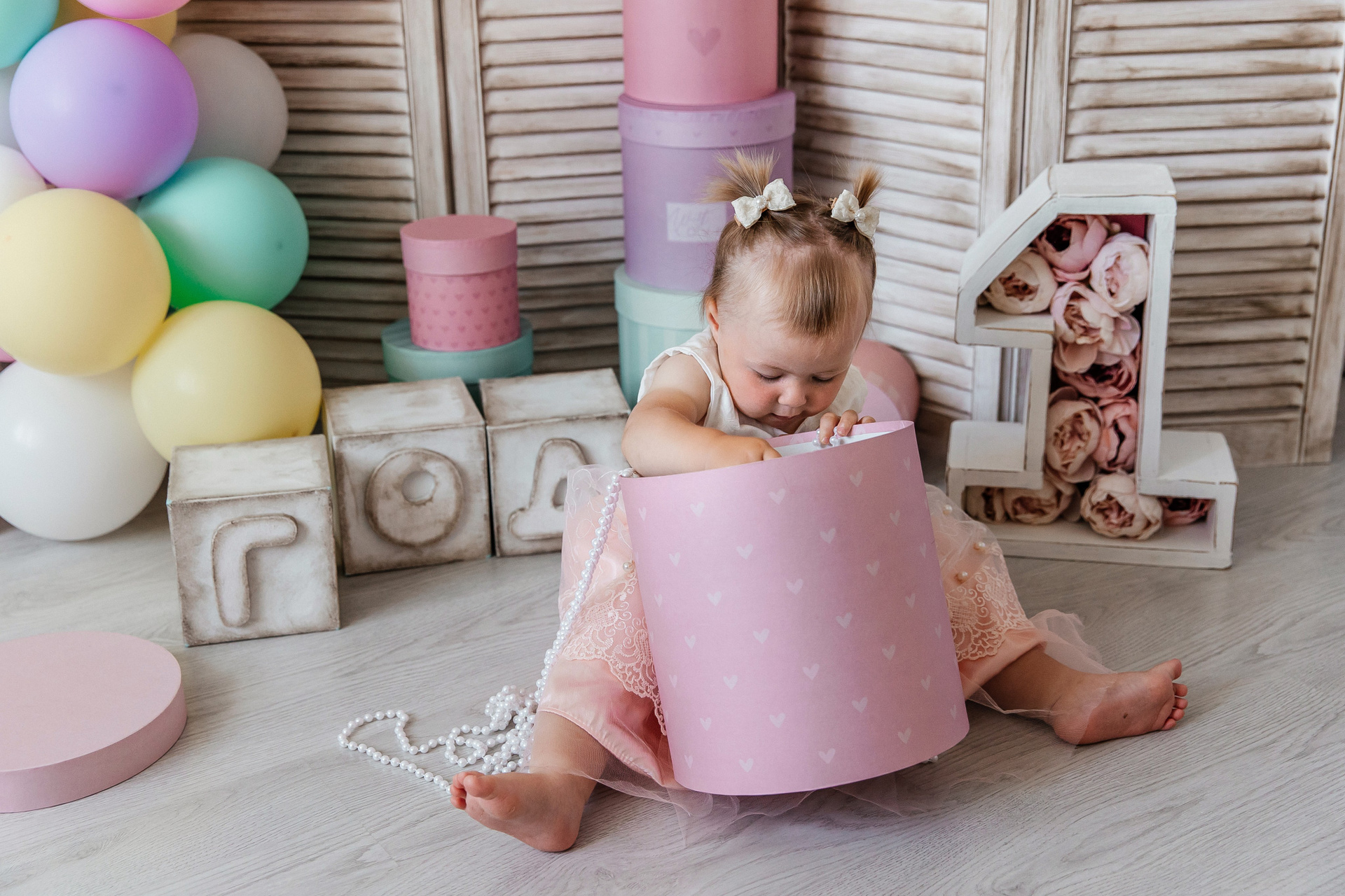 Минимализм (единичка, буквы-кубики, отдельный реквизит на фоне)