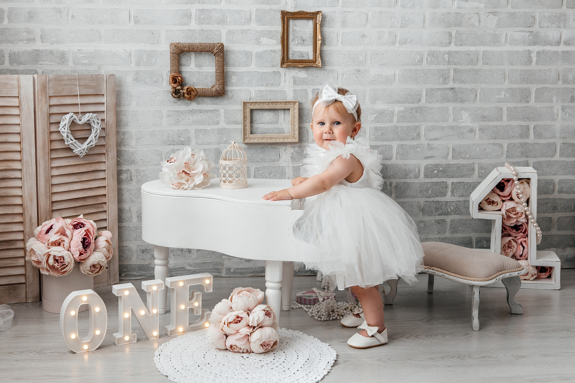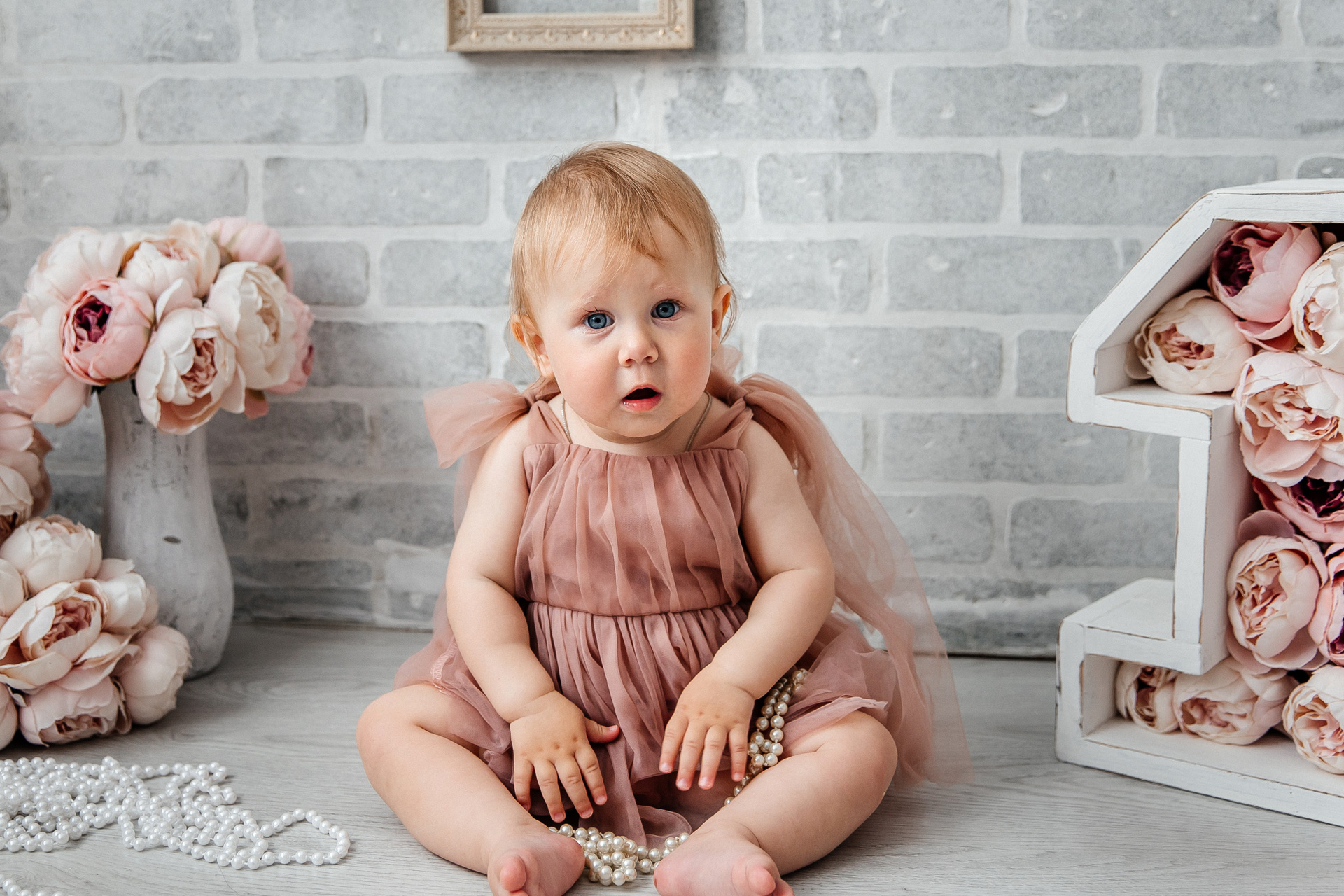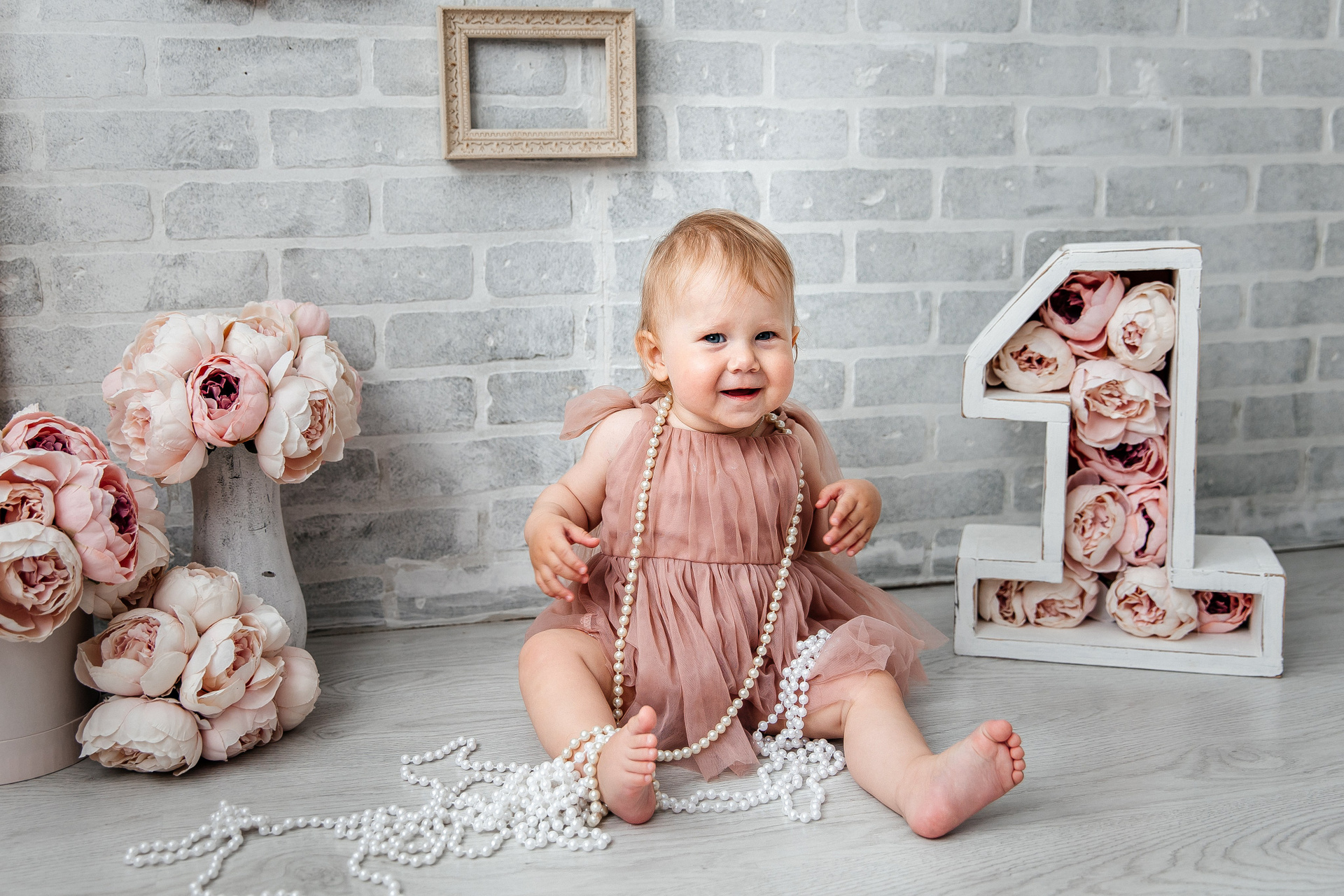 Минимализм (единичка, буквы-кубики, отдельный реквизит на фоне)
