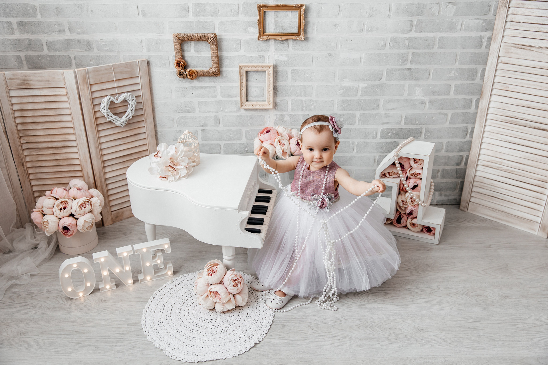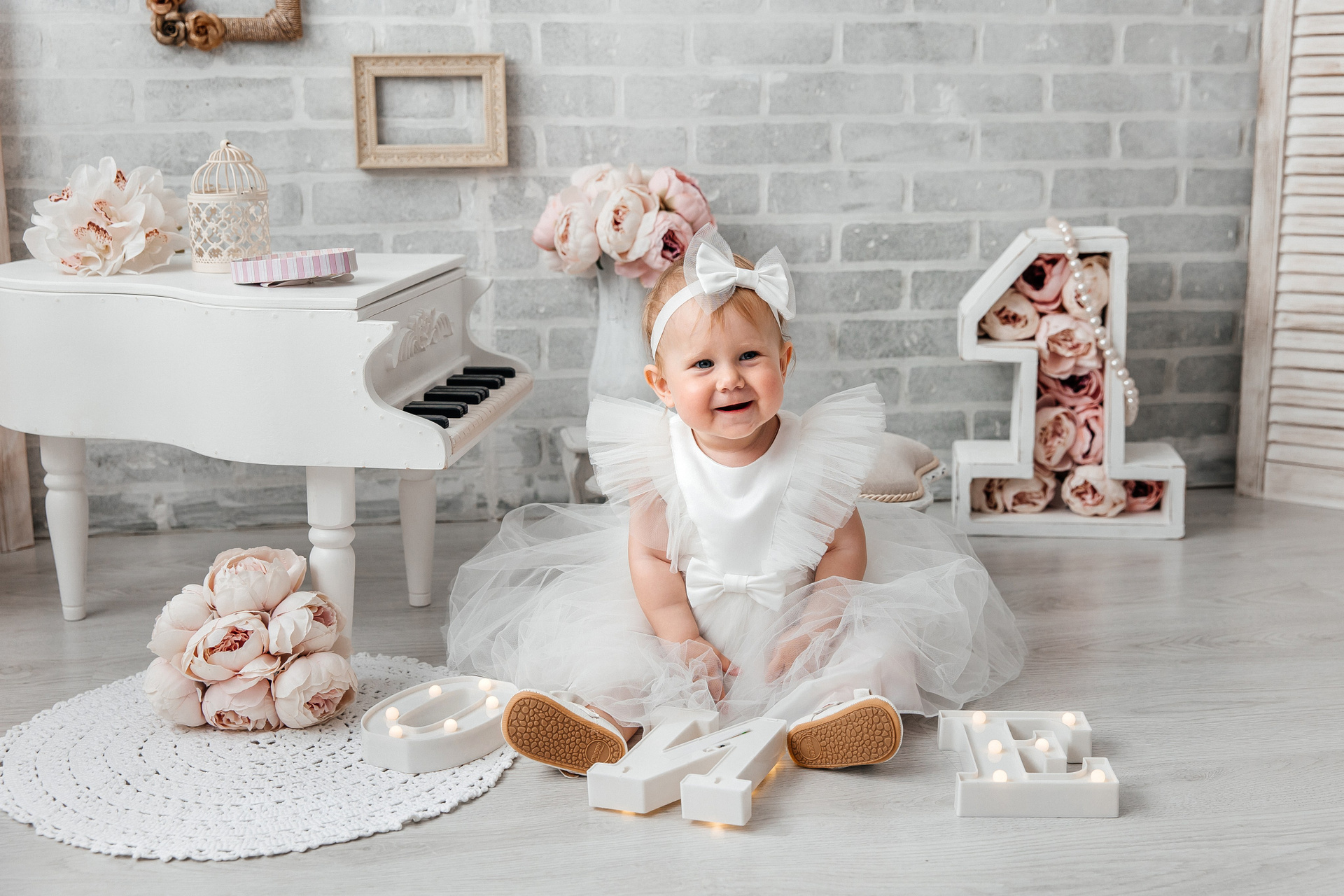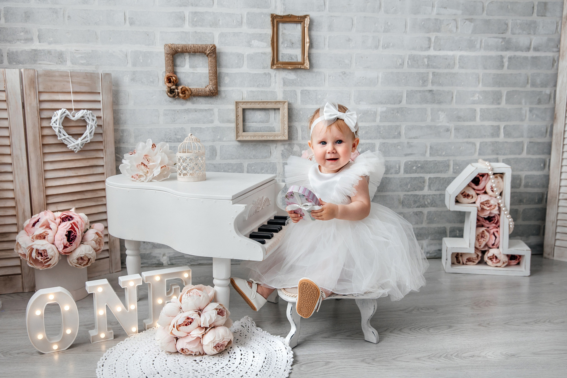 Минимализм (единичка, буквы-кубики, отдельный реквизит на фоне)