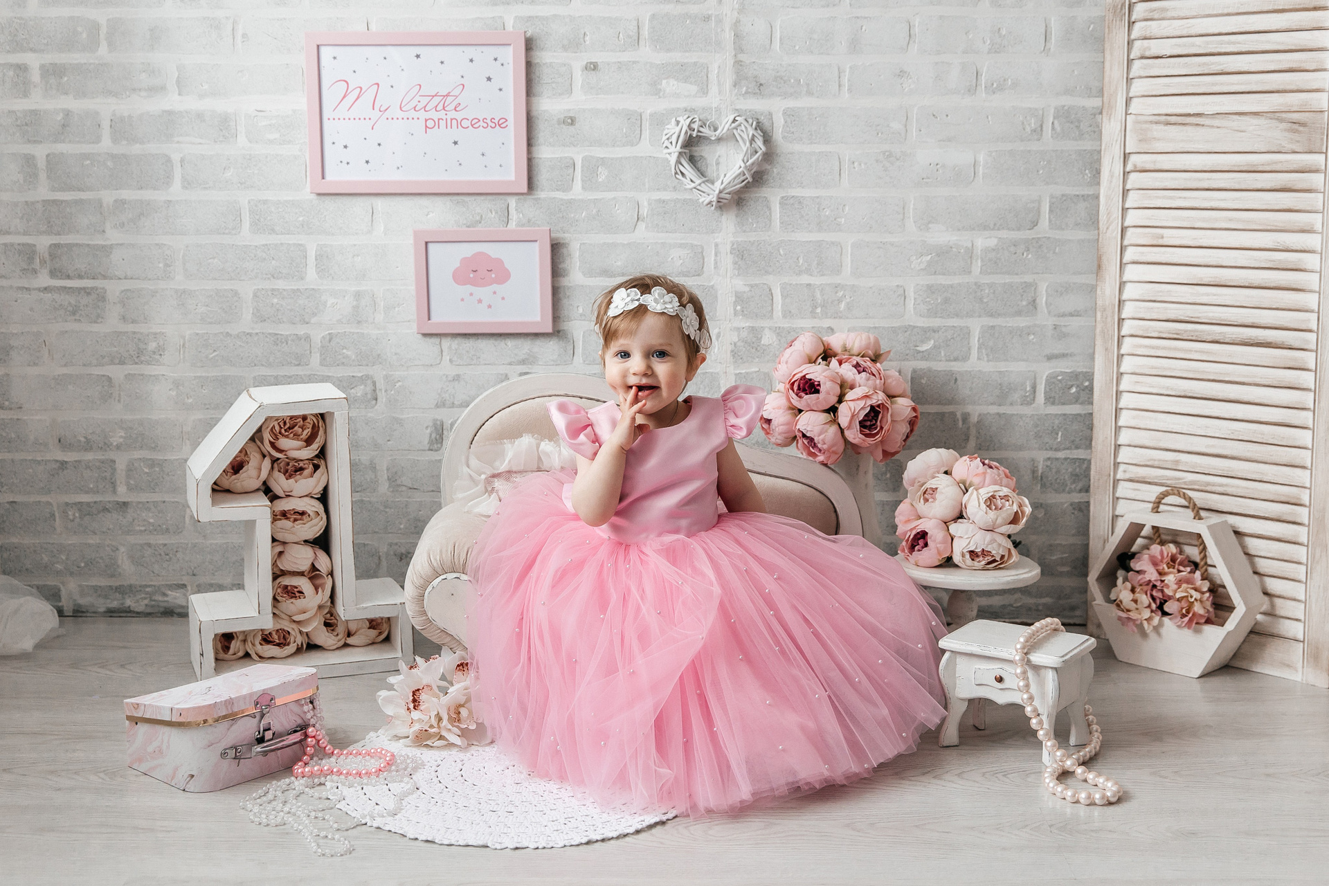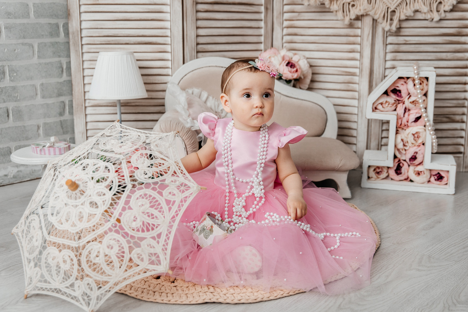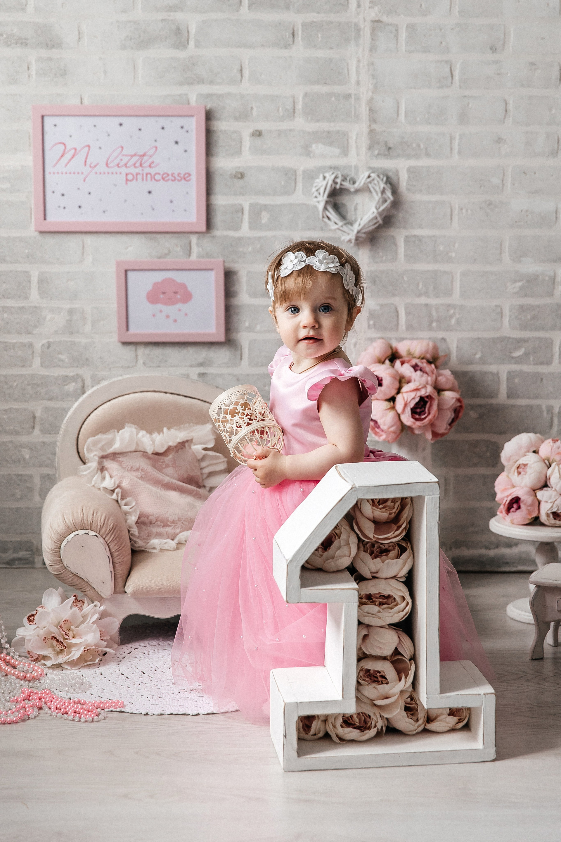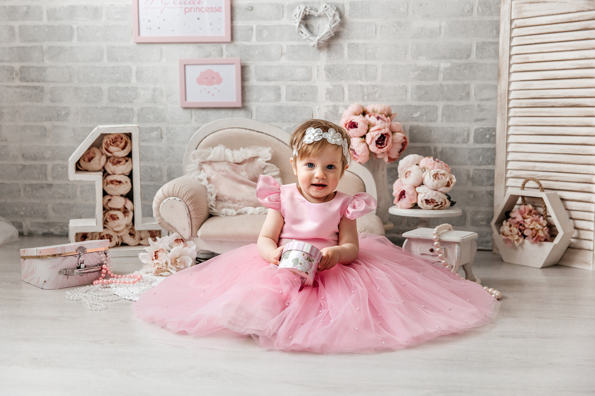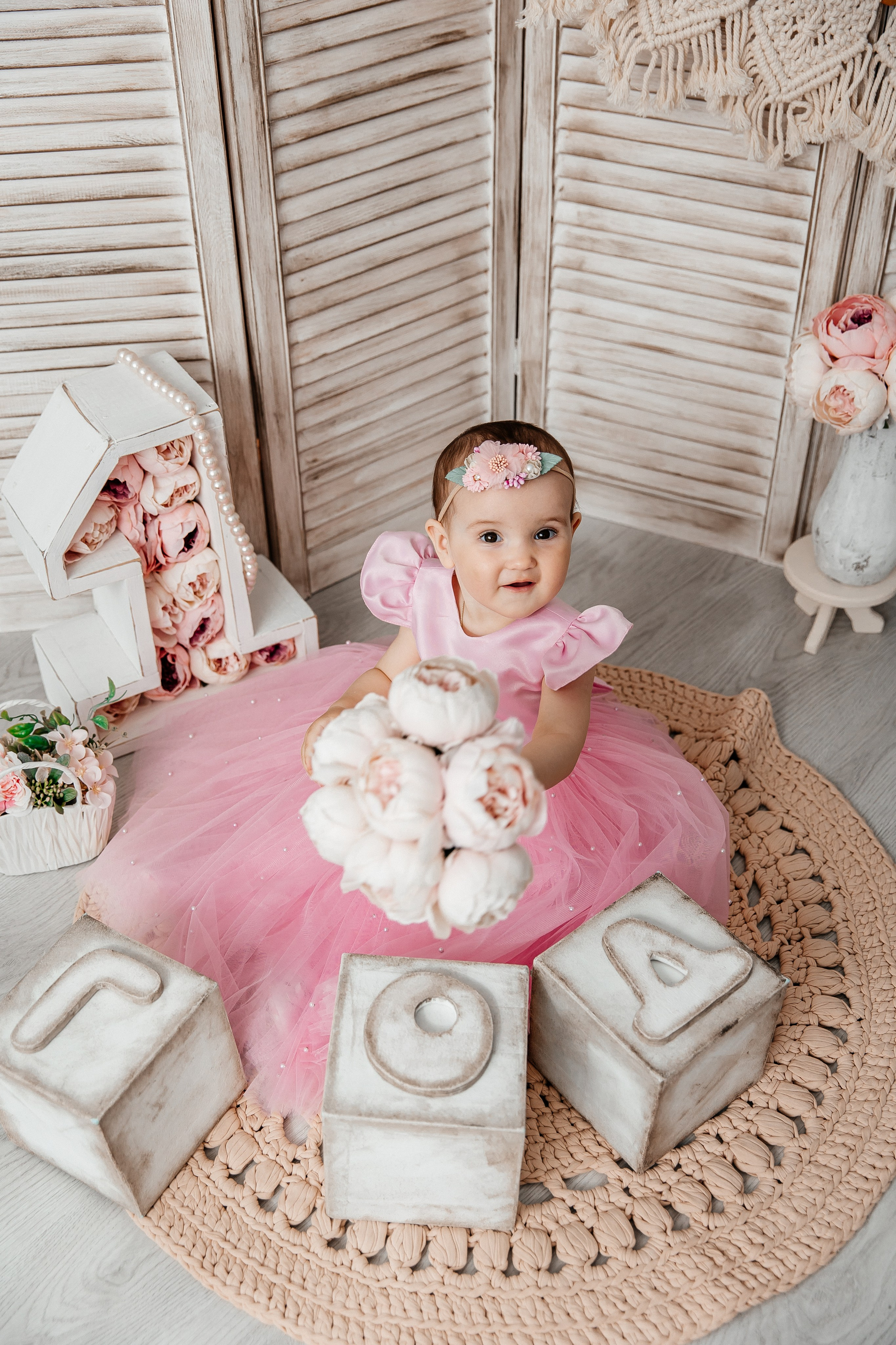 Минимализм (единичка, буквы-кубики, отдельный реквизит на фоне)