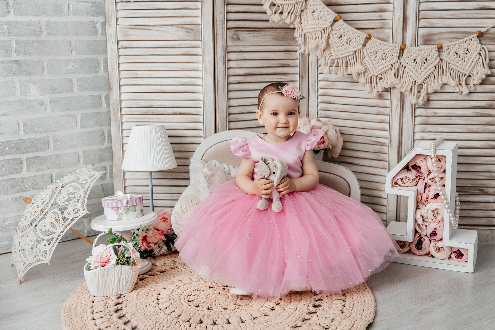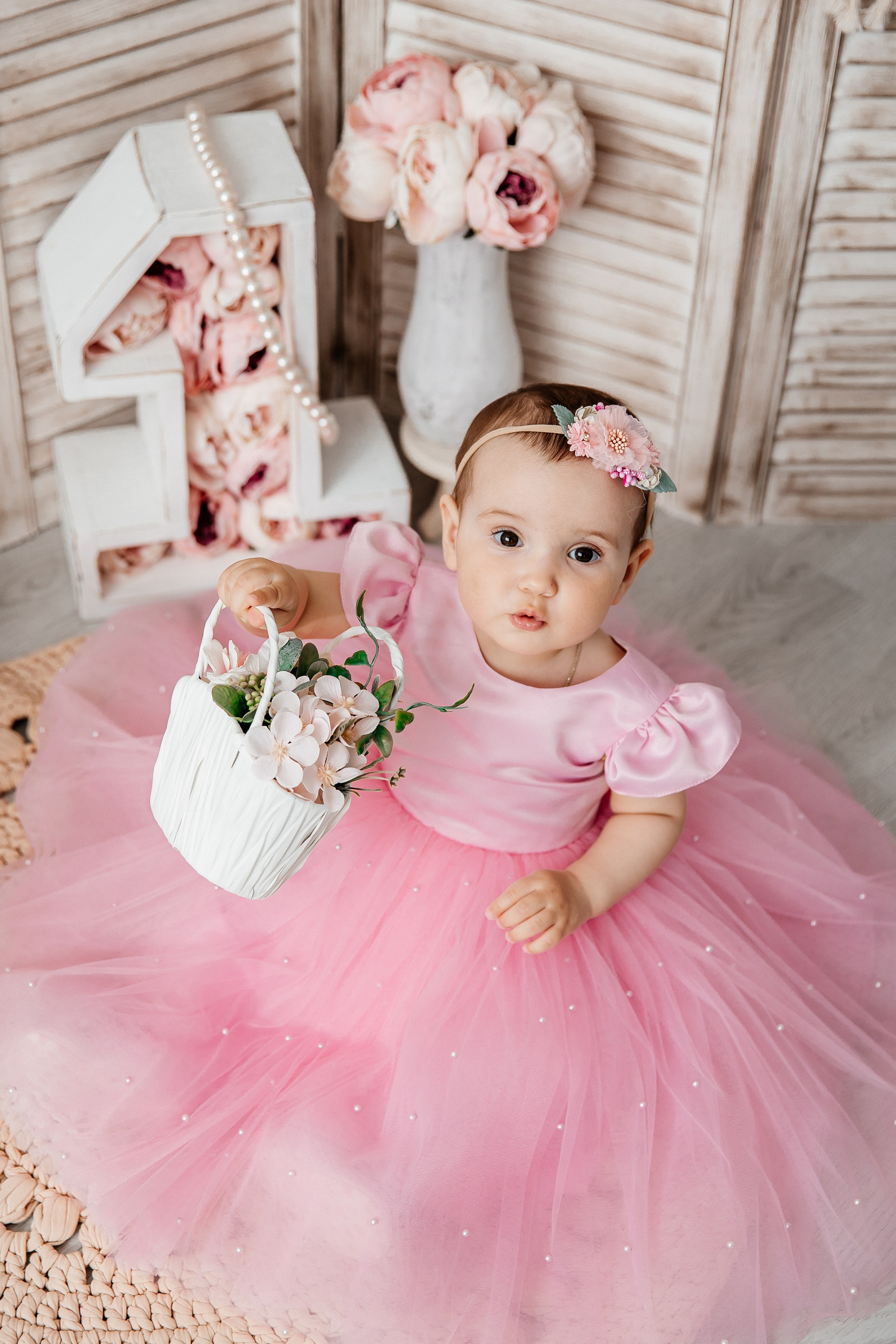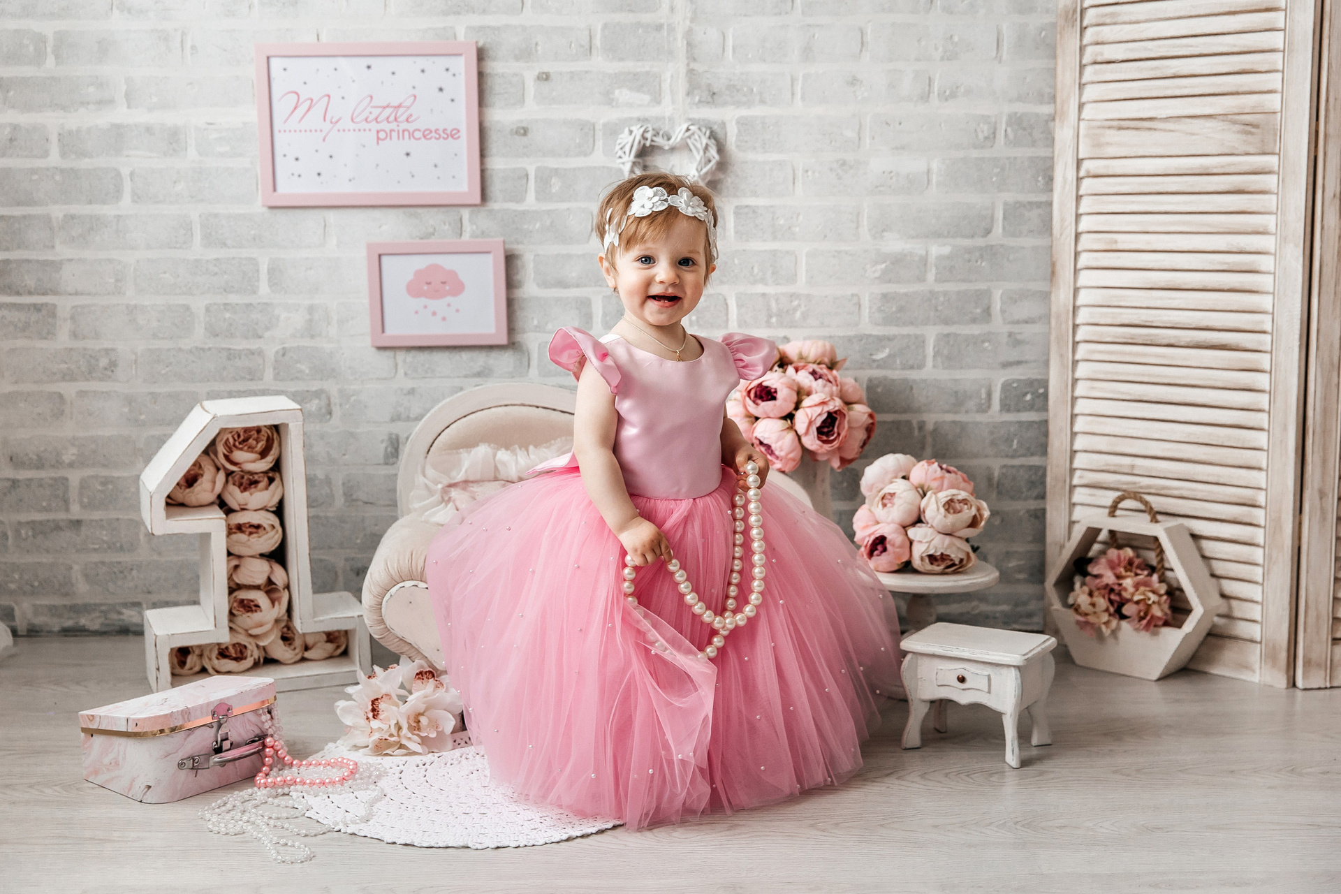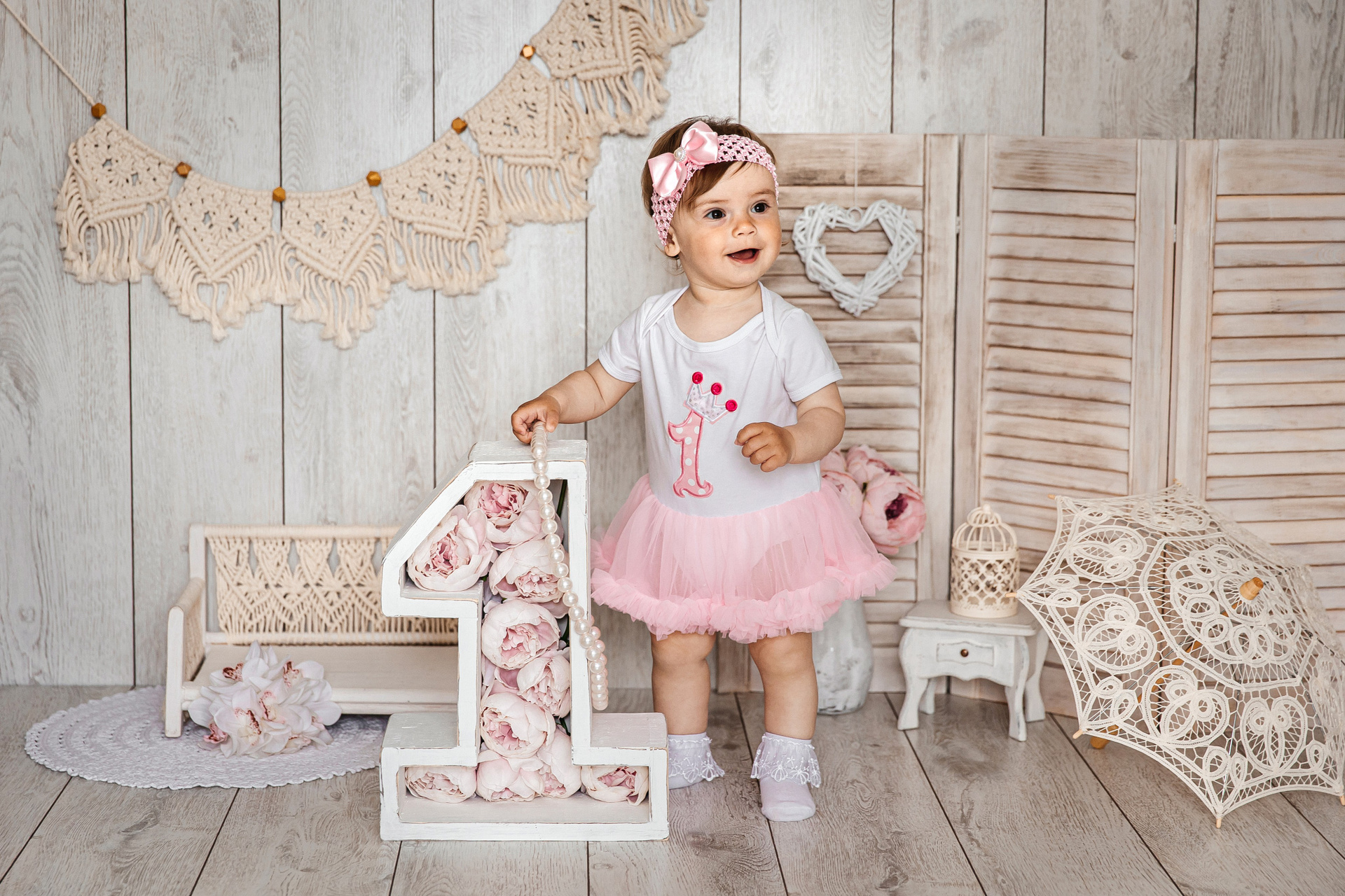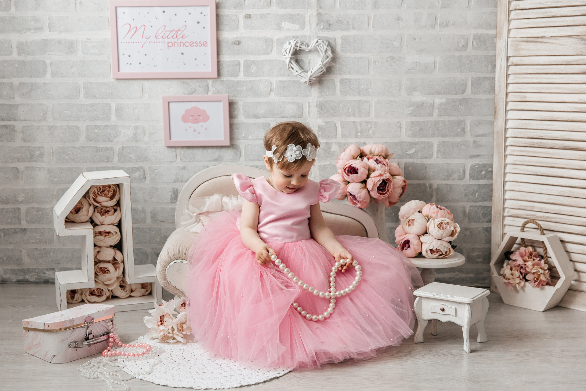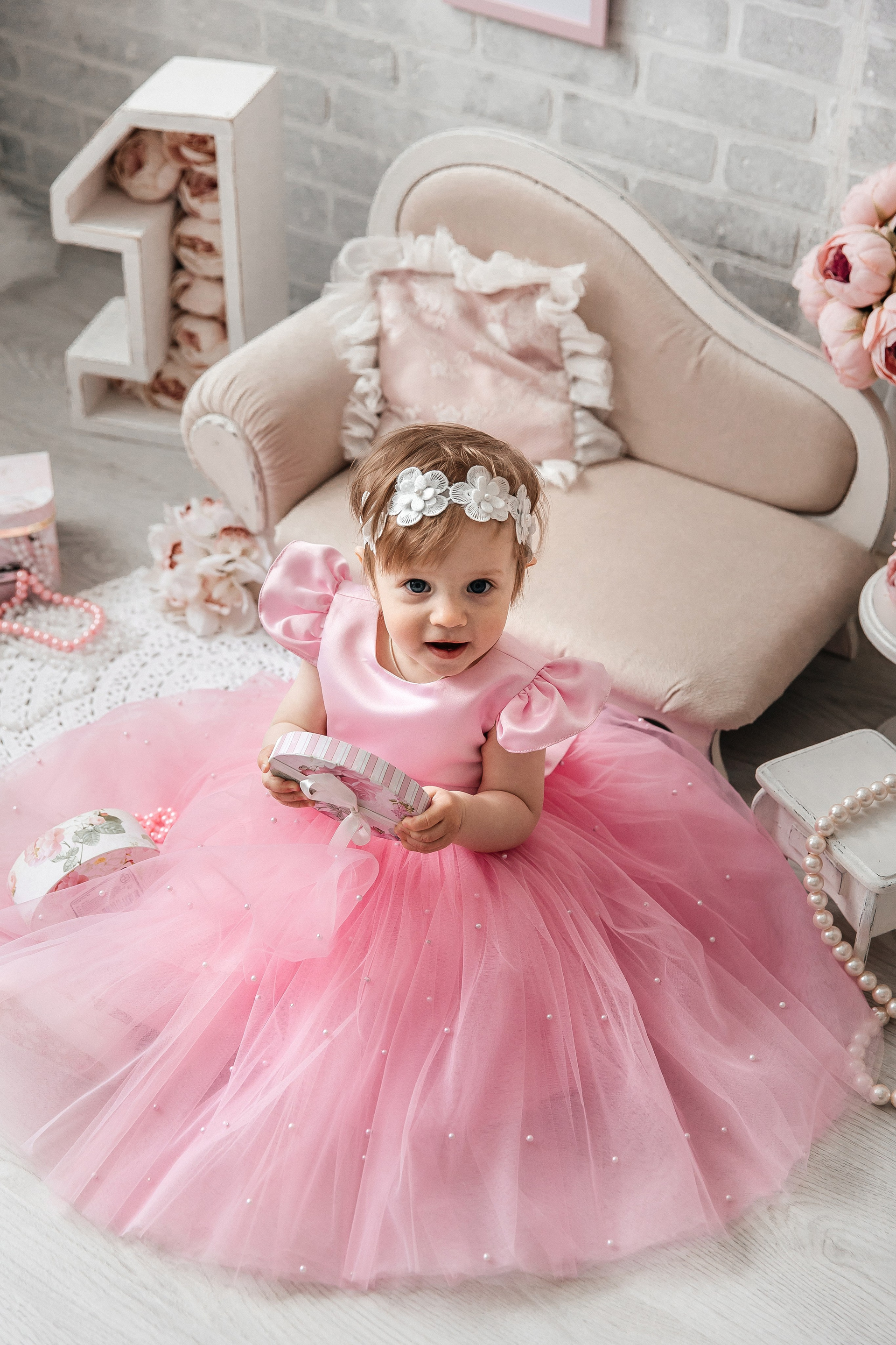 Минимализм (единичка, буквы-кубики, отдельный реквизит на фоне)