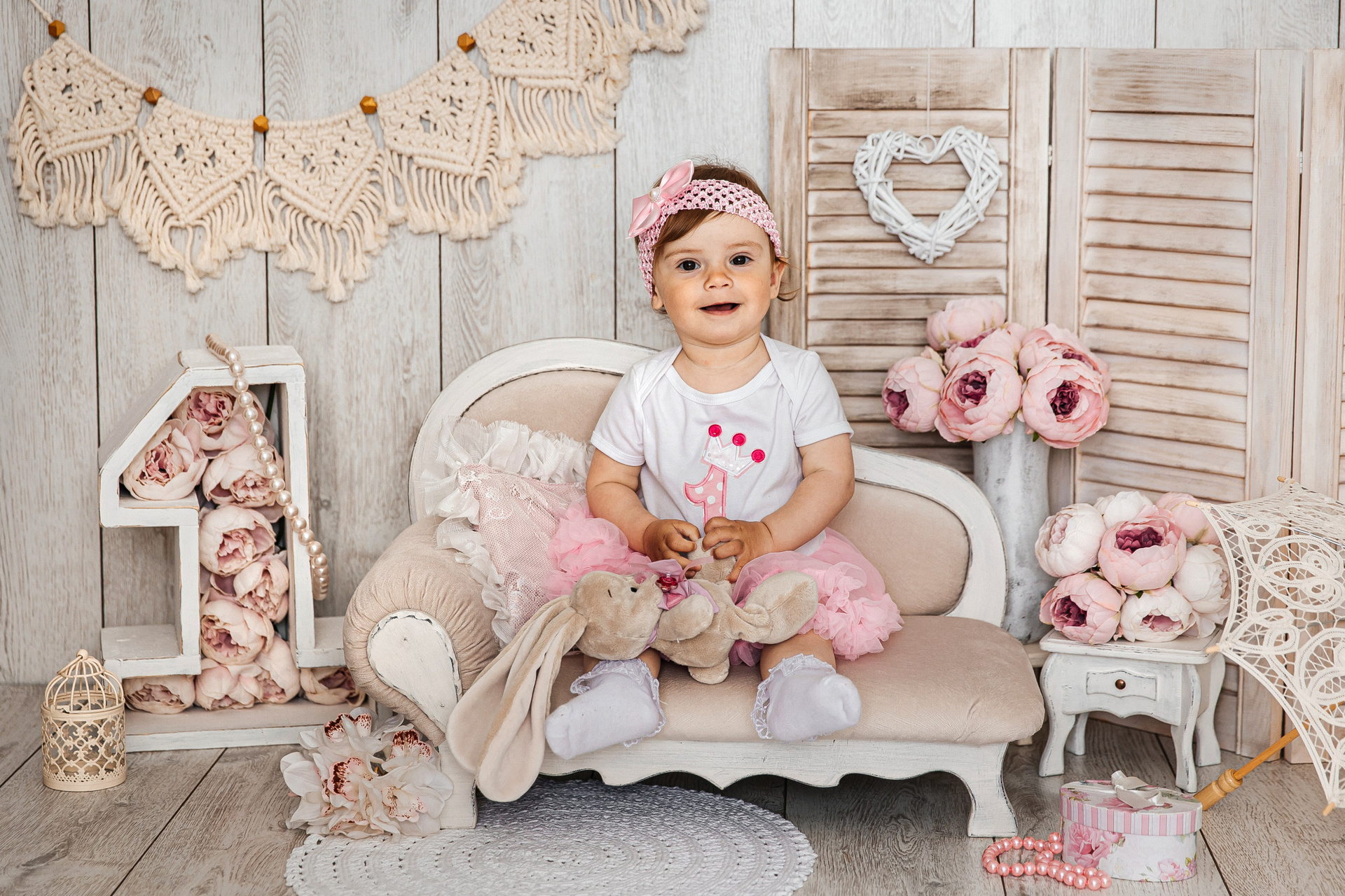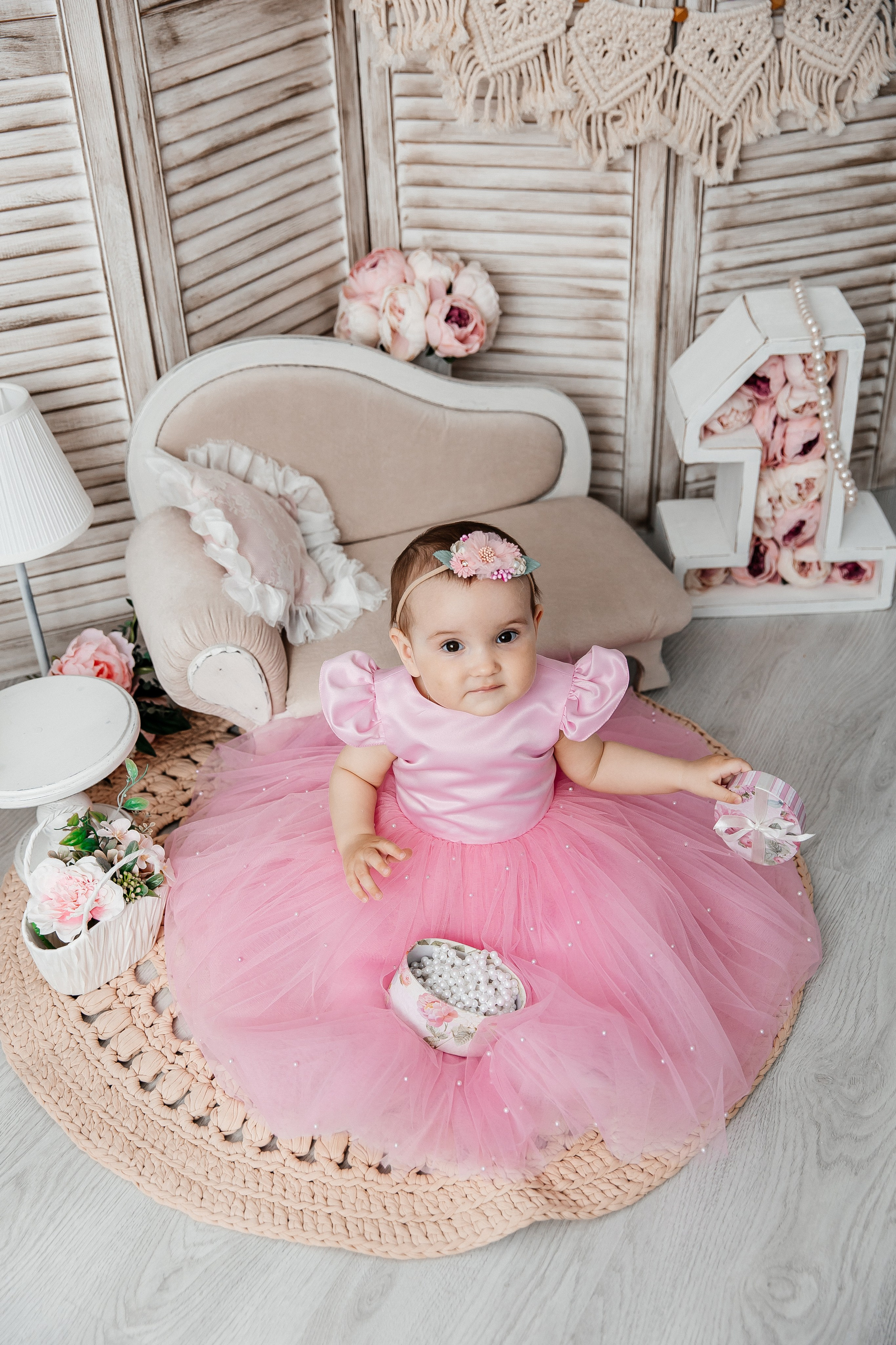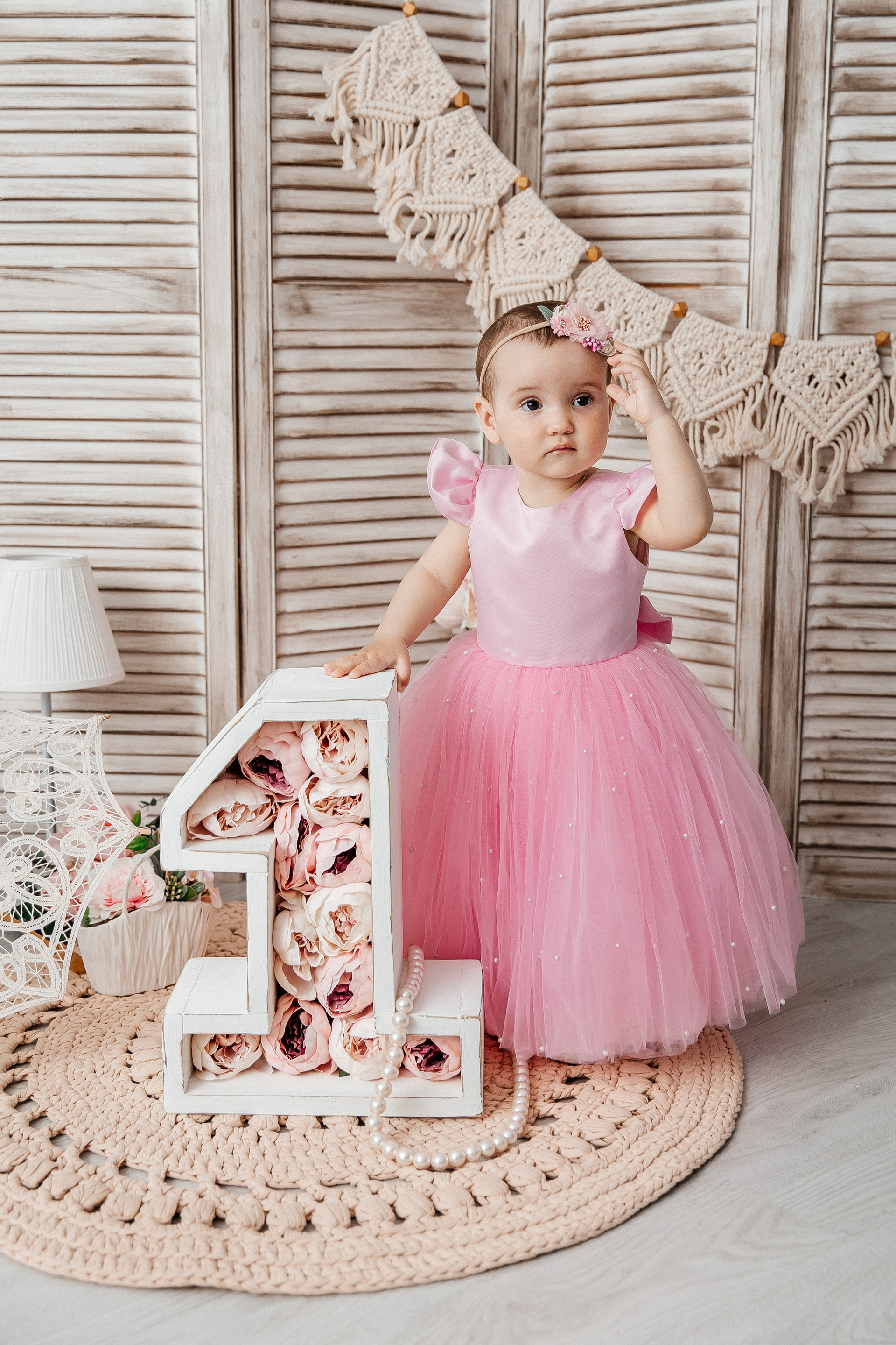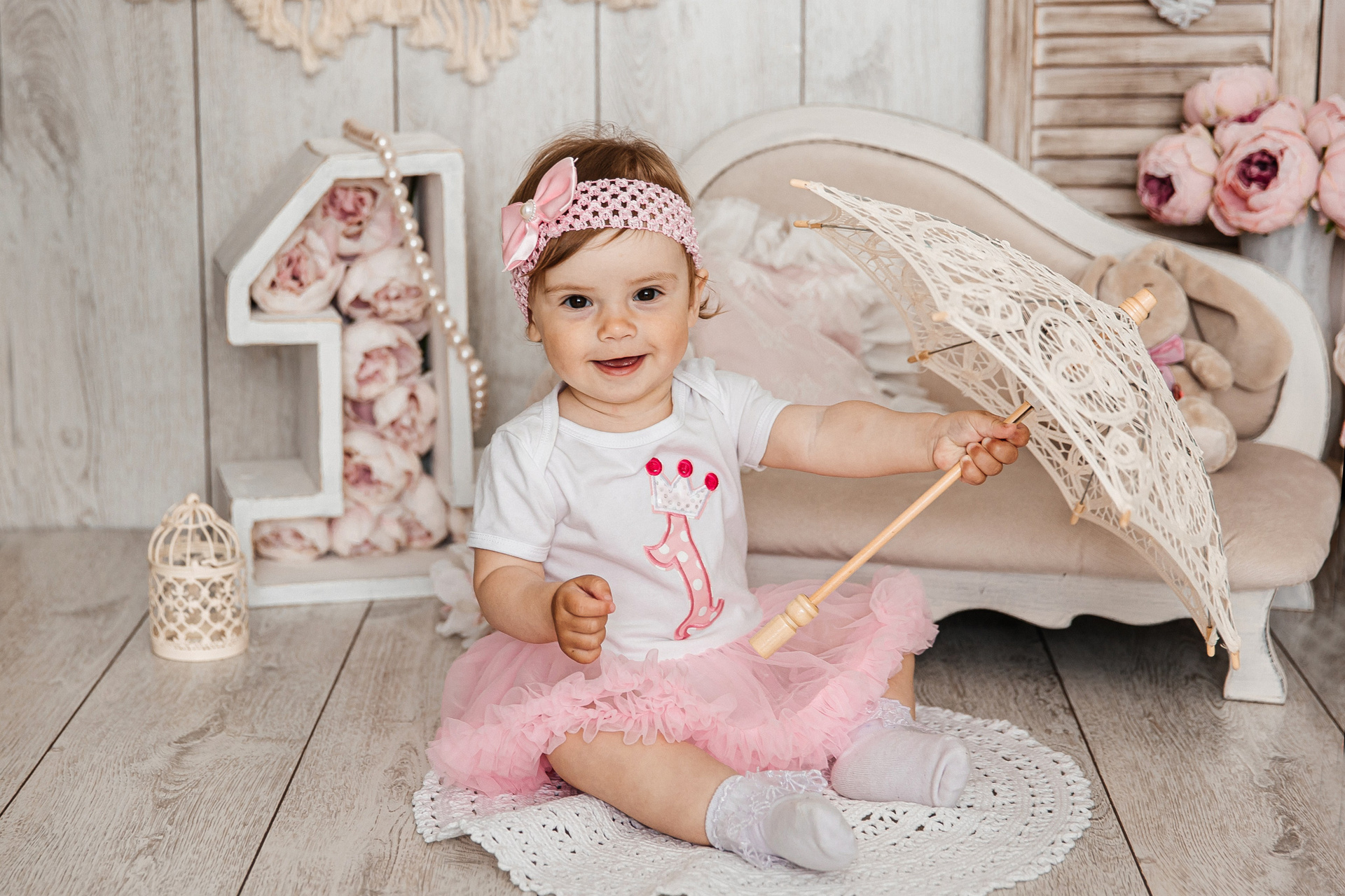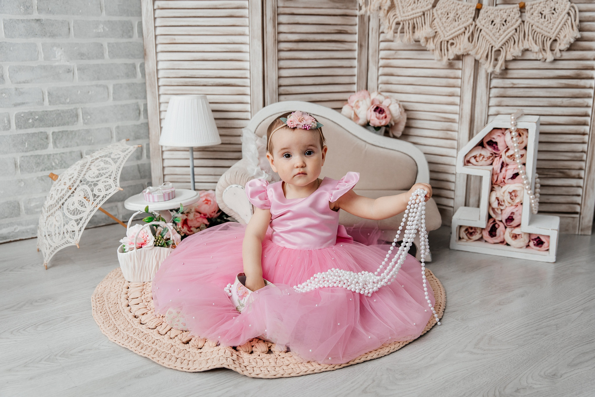 Минимализм (единичка, буквы-кубики, отдельный реквизит на фоне)