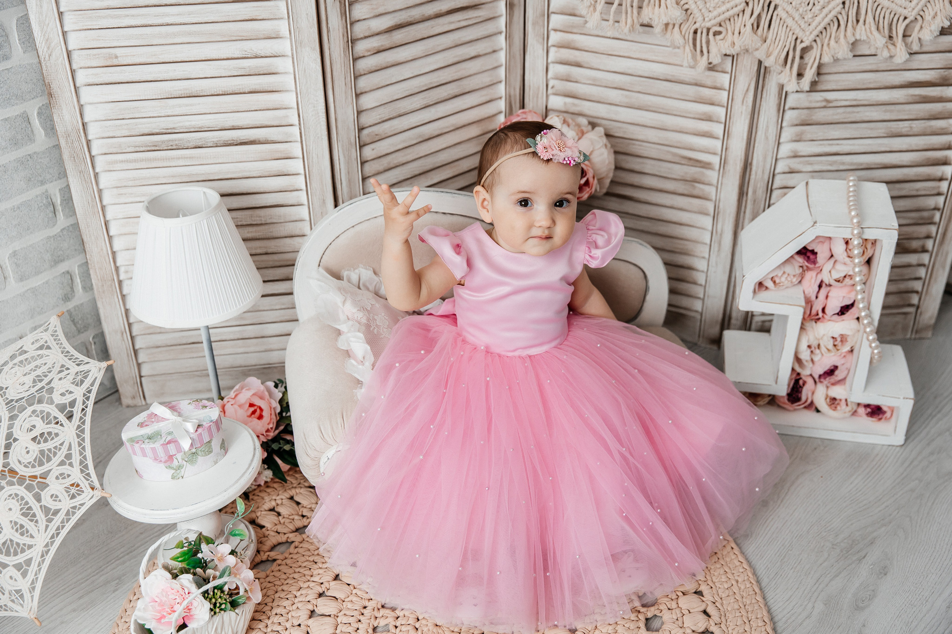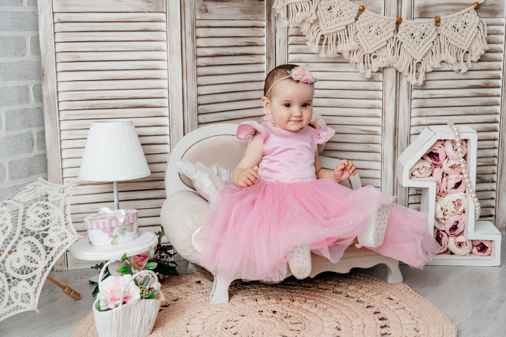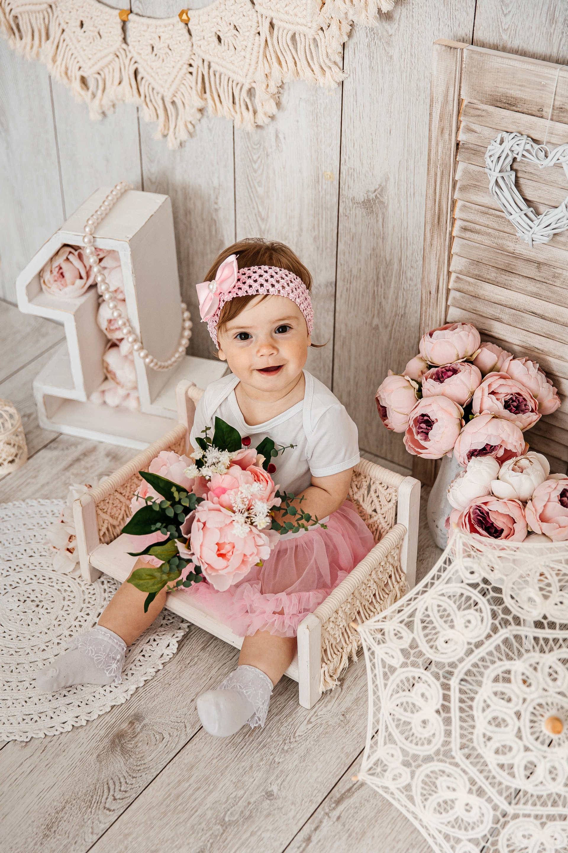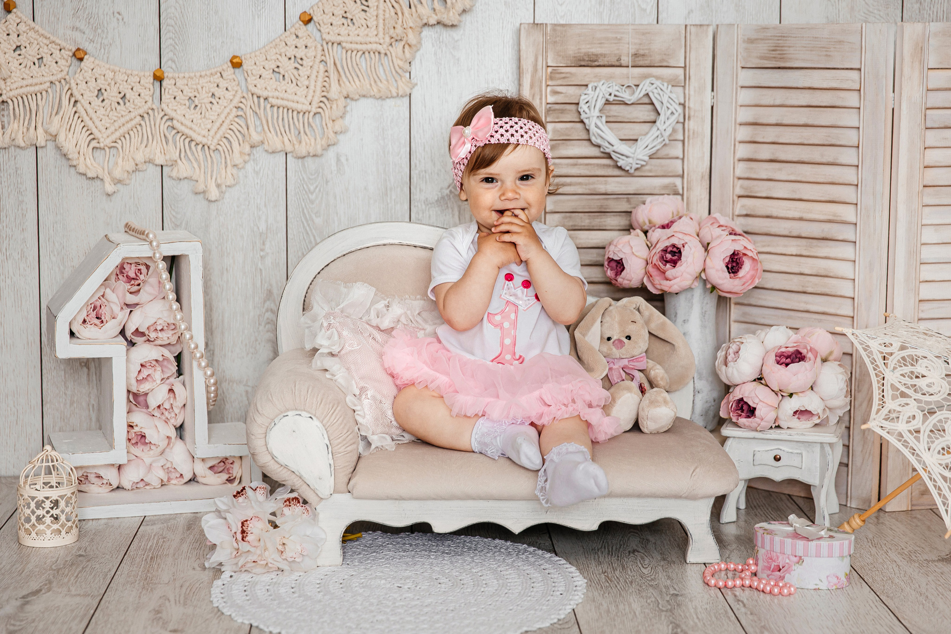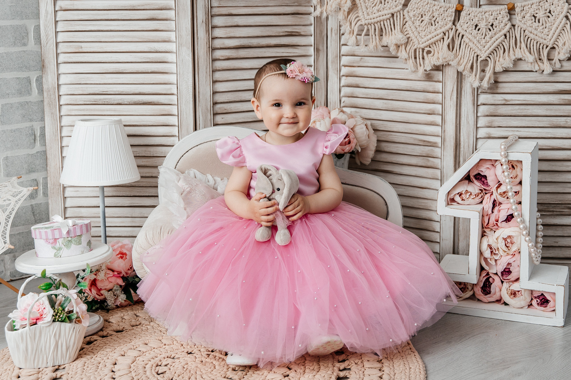 Минимализм (единичка, буквы-кубики, отдельный реквизит на фоне)